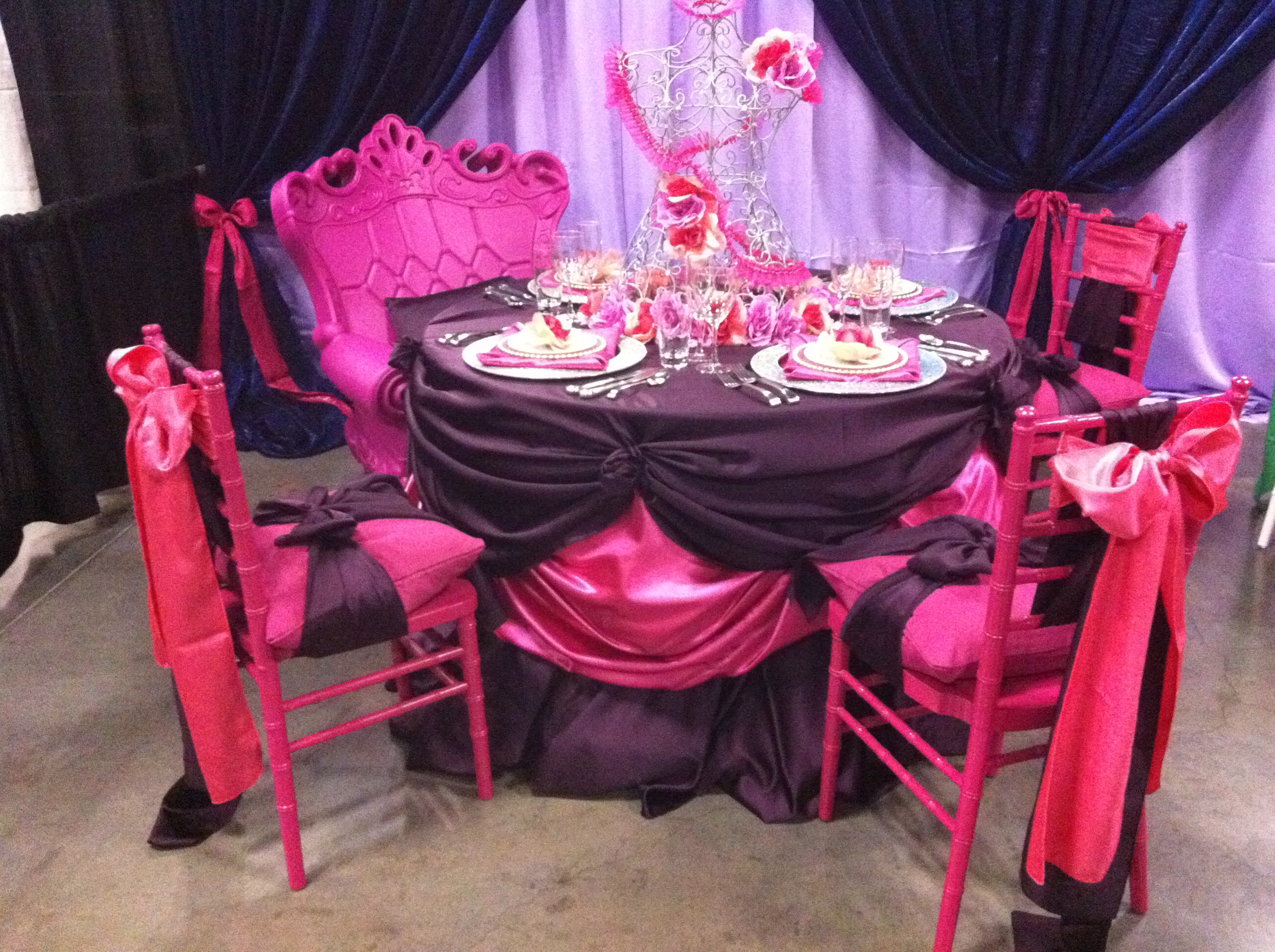 Well, another Quince show has come and gone, and this was one of the most amazing shows we have done. How exciting! We were able to debut our new featured Vibrant Oversized Thrones, and the good reviews came pouring in! It is times like this that makes what we do so exciting. We are always happy to be able to dress [the tables] to impress! Let us know what you think about the new featured chairs. They are sure to make your little prince or princess feel like King or Queen for their special day! If you are interested, stop by the SOUTH showroom for a trial-sitting! We have them on display, and the best part is, they come in 10+ colors!