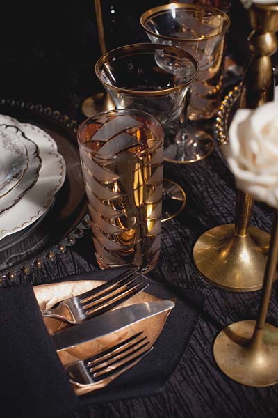 Below are some pics of the linens, chargers, and flatware we provided for the wedding. For the full post, click here.